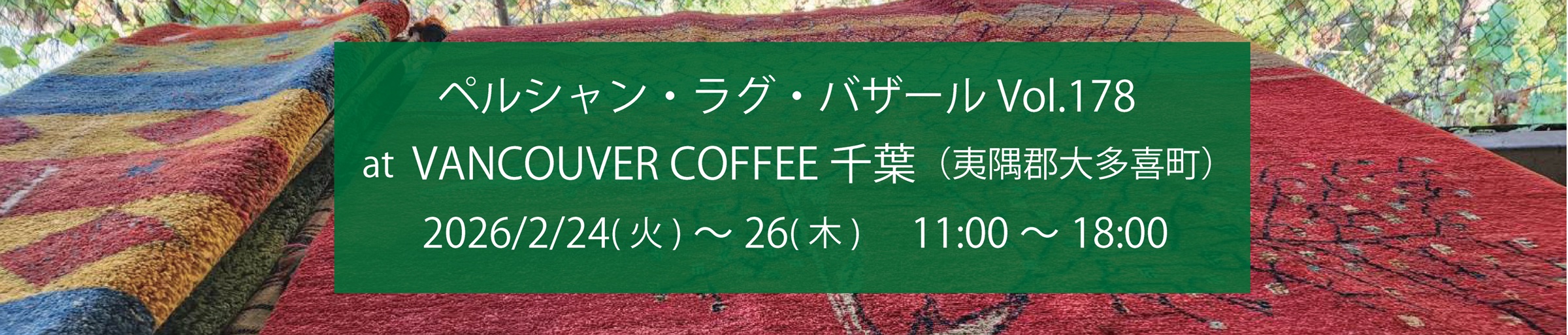 2月12日(木)~16日(月)の5日間、名古屋市の古民家「KOKOIE」にてペルシャン・ラグ・バザール Vol.176を行います。閑静な住宅地・覚王山に佇む素敵な古民家にて思い存分ラグの世界をご堪能ください!