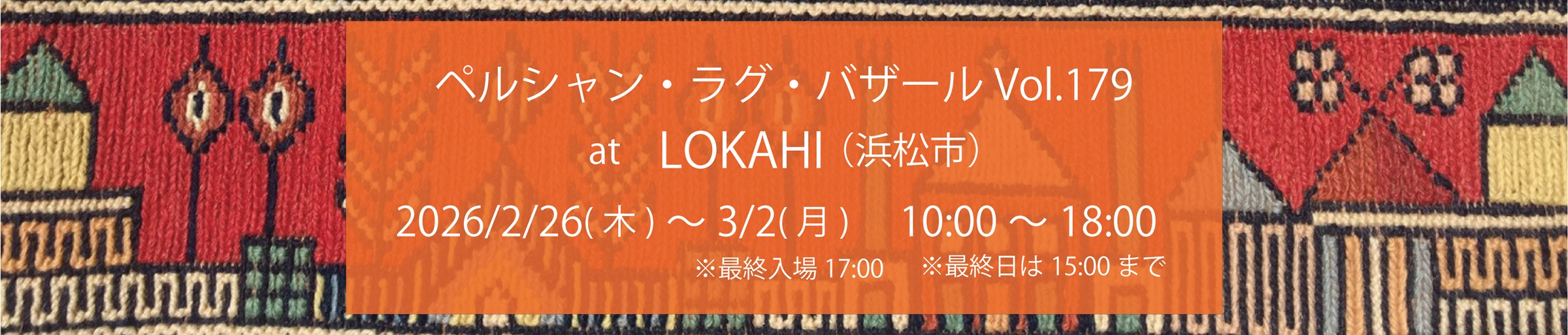 2月26日(木)~3月2日(月)の5日間、浜松市の古民家「LOKAHI」にてペルシャン・ラグ・バザール Vol.179を行います。地域に愛される癒しの古民家にてのんびりとラグをご覧ください!