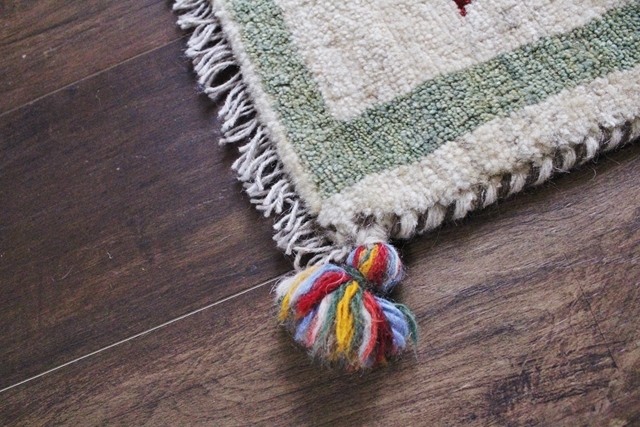 ペルシャのギャッベは天然の羊の毛が脂を含んでいますので、汚れをはじいてくれるのもまた使いやすい特長です。