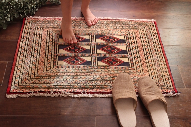 特に玄関マットとしては他の多くのペルシャ絨毯のように玄関に敷いた際に毛の流れと文様の向きが横向きになることなく、正面から手前へと出迎えてくれるのでこだわりのあるお客様にはお勧めです。