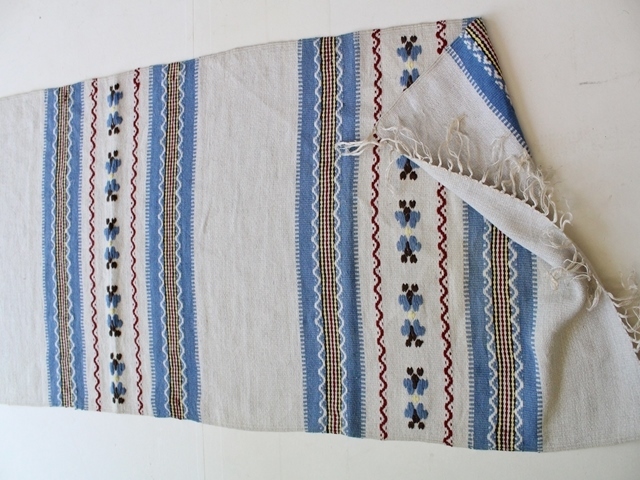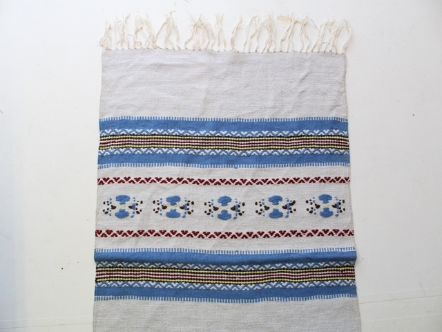 ペルシャの骨董市で見つけたウールのランナーです。 約30~40年前の品。 手織りの一点ものです。 白地に水色の優しい色合いとノスタルジックな柄の雰囲気に癒されます。 時を経るごとに味わいが増しそうな品です。 サイズ:145×49cm(フリンジを除く) フリンジの長さ:約6cm 厚み:約0.2cm 素材:ウール