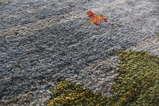 ペルシャのギャッベは天然の羊の毛が脂を含んでいますので、汚れをはじいてくれるのもまた使いやすい特長です。