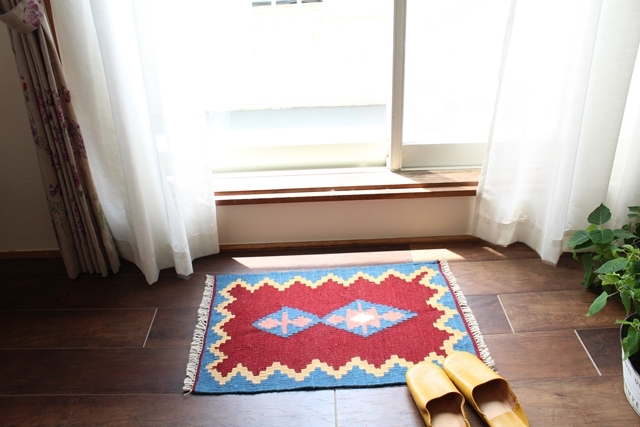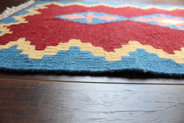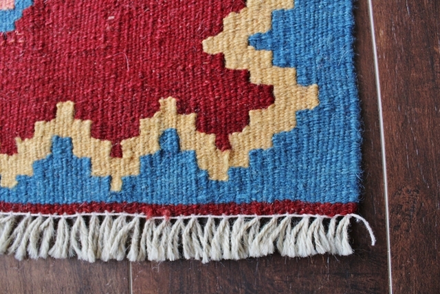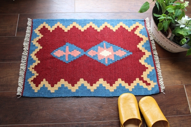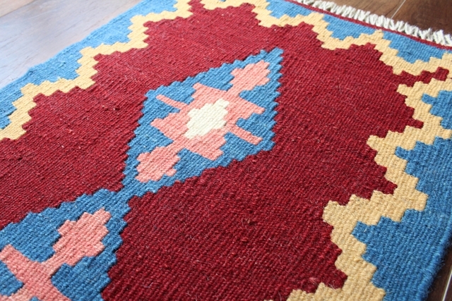 イラン南西部、シラーズ地方の遊牧民が織り上げたかわいい手織りのキリム。