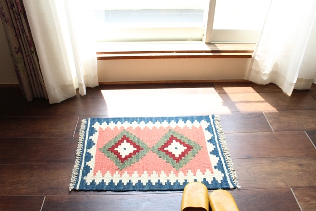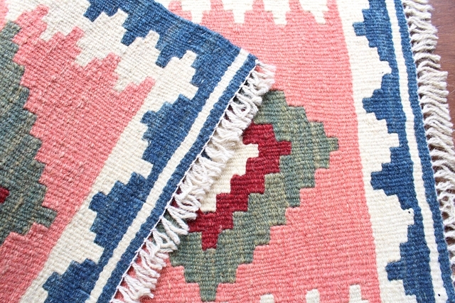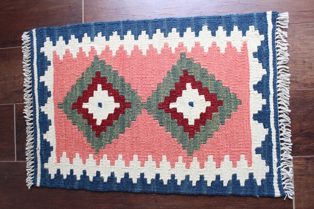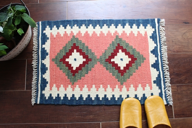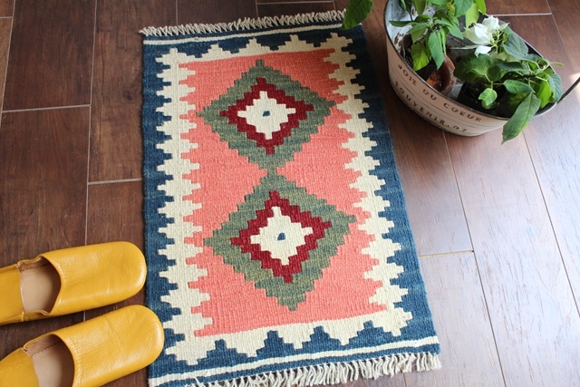 イラン南西部、シラーズ地方の遊牧民が織り上げたかわいい手織りのキリム。