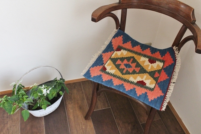 イラン南西部、シラーズ地方の遊牧民が織り上げた小さくてかわいい手織りのキリム。 一点物なので模様や色が一枚一枚異なります。 素朴な配色センス、手作りの温かさにあふれた手触り、かわいいサイズ、どこから見ても満点のアイテムです。 お手頃な価格も魅力。 表裏リバーシブルで使えます。 サイズ:約40cm×40cm 素材:ウール100%