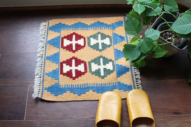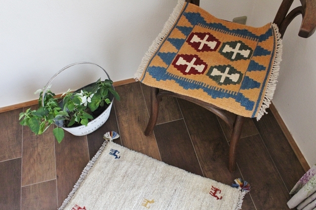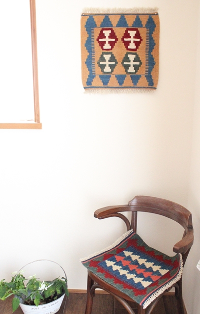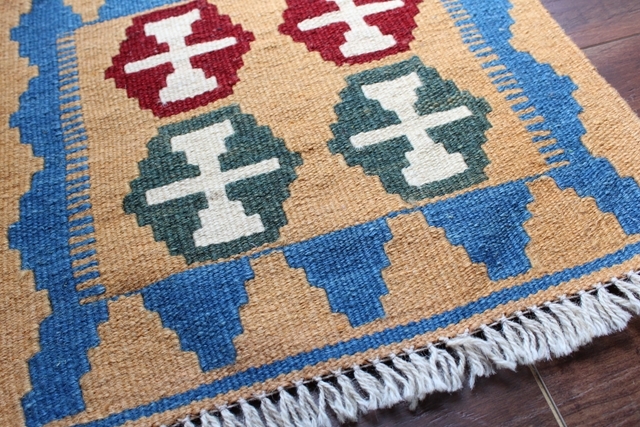 イラン南西部、シラーズ地方の遊牧民が織り上げた小さくてかわいい手織りのキリム。