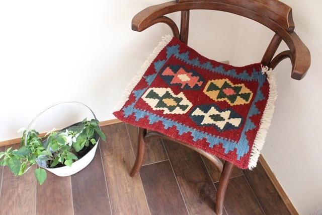 イラン南西部、シラーズ地方の遊牧民が織り上げた小さくてかわいい手織りのキリム。 一点物なので模様や色が一枚一枚異なります。 素朴な配色センス、手作りの温かさにあふれた手触り、かわいいサイズ、どこから見ても満点のアイテムです。 お手頃な価格も魅力。 表裏リバーシブルで使えます。 サイズ:約40cm×40cm 素材:ウール100%