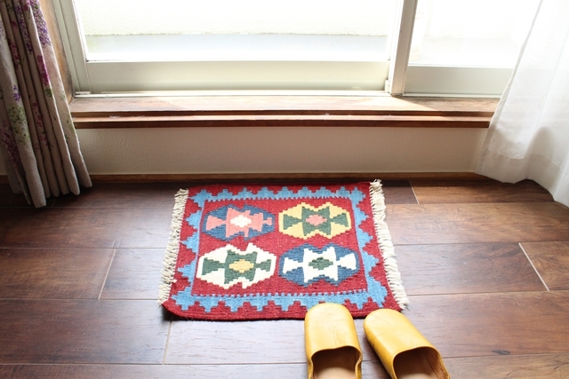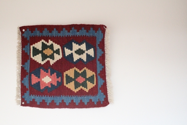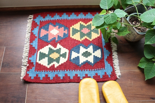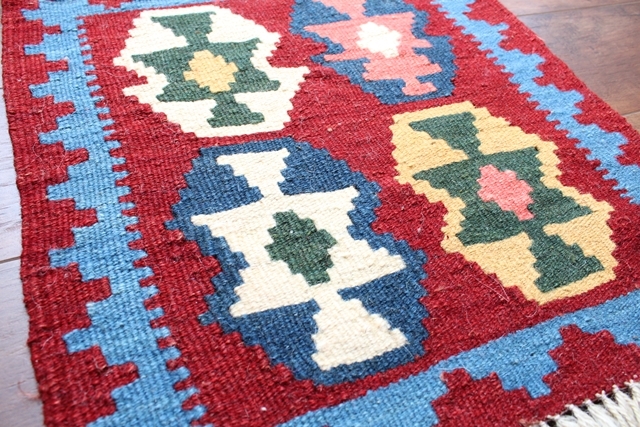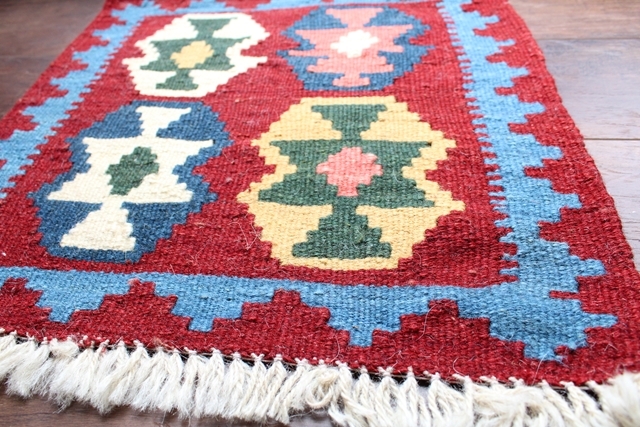 イラン南西部、シラーズ地方の遊牧民が織り上げた小さくてかわいい手織りのキリム。