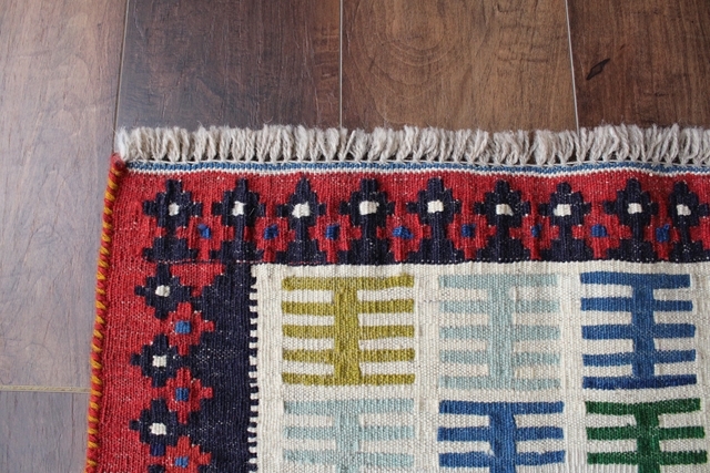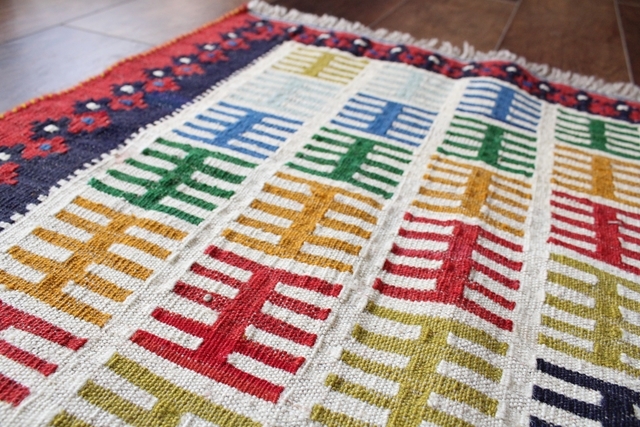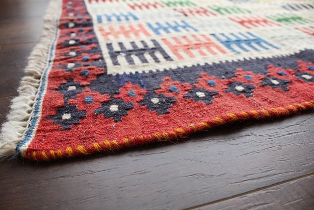 ペルシャのトライバル柄がカラフルに織り込まれた上質なキリム。