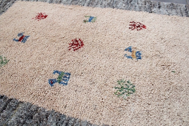 ペルシャのギャッベは天然の羊の毛が脂を含んでいますので、汚れをはじいてくれるのもまた使いやすい特長です。