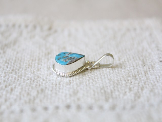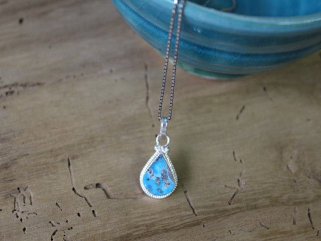 ※本品は天然のターコイズを使った手作り品ですので、商品により表面の擦れ、おうとつ、またシルバー部分のゆがみなどがありますが、ご了承の上お買い求めください。