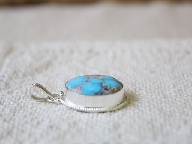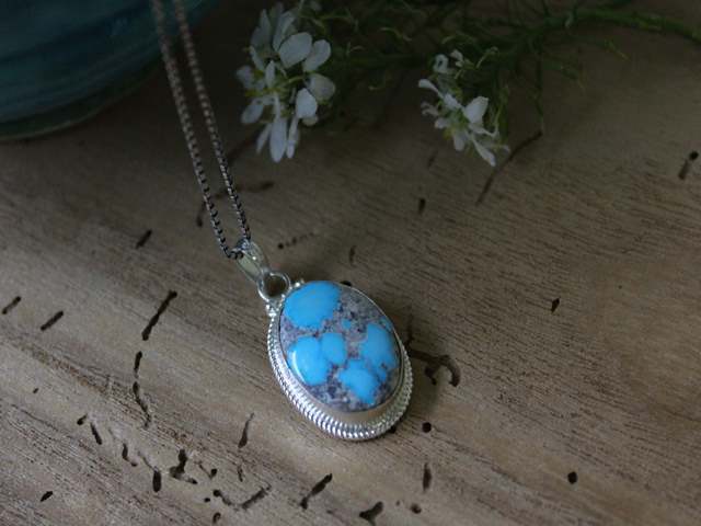 ※本品は天然のターコイズを使った手作り品ですので、商品により表面の擦れ、おうとつ、またシルバー部分のゆがみなどがありますが、ご了承の上お買い求めください。