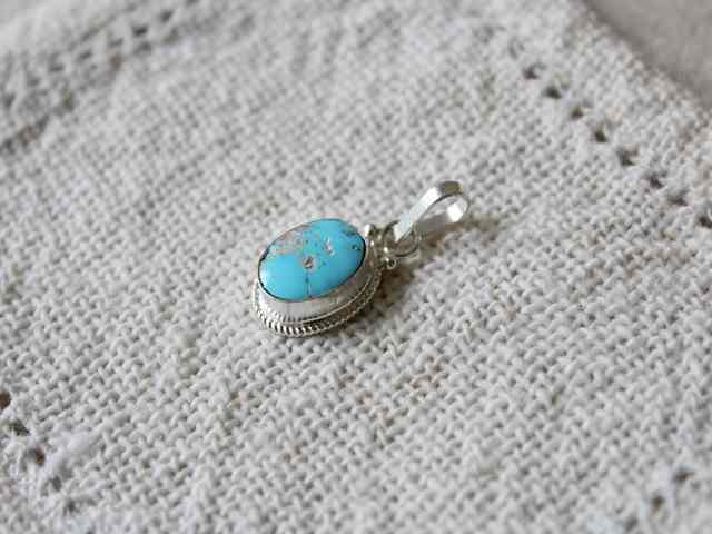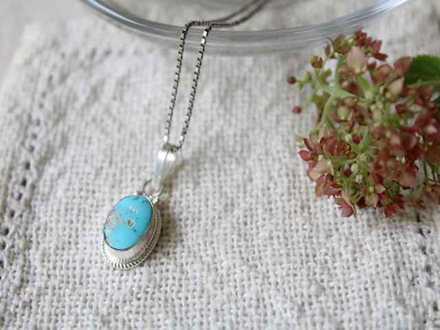 ※本品は天然のターコイズを使った手作り品ですので、商品により表面の擦れ、おうとつ、またシルバー部分のゆがみなどがありますが、ご了承の上お買い求めください。