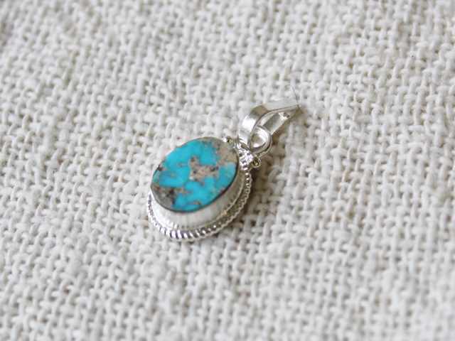 ※本品は天然のターコイズを使った手作り品ですので、商品により表面の擦れ、おうとつ、またシルバー部分のゆがみなどがありますが、ご了承の上お買い求めください。