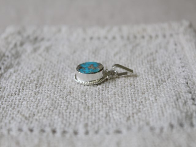 ※ターコイズと非常に相性のいい天然のシルバーを使用しています。空気に触れ時間が経つと銀特有の燻し(黒ずみ)が見られますが、その際は柔らかい布などでお拭きください。