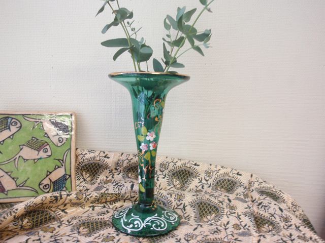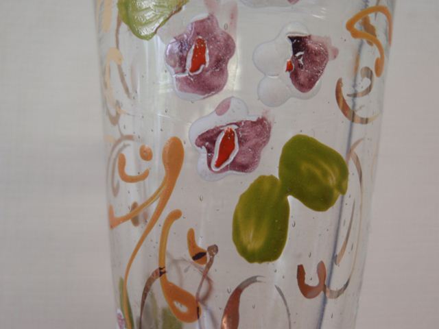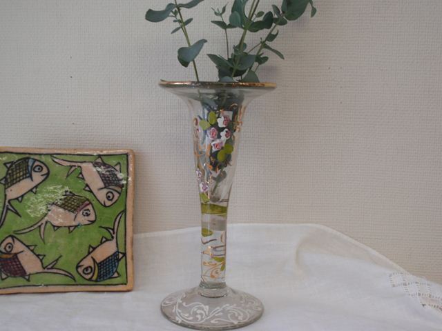 ペルシアン・グラスのキャンドルホルダーです。全てハンドメイドなので一つ一つ違ったニュアンスが楽しめます。手描きの花模様がかわいらしいです。【緑・花柄】サイズ:高さ14.5cm 底面直径7.5cm【透明・花柄】サイズ:高さ15cm 底面直径7.5cm