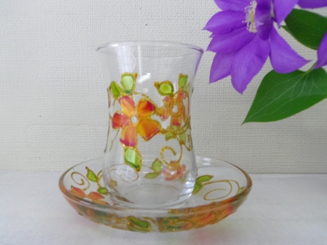 花柄のチャイ(紅茶)用グラス&ソーサー。
