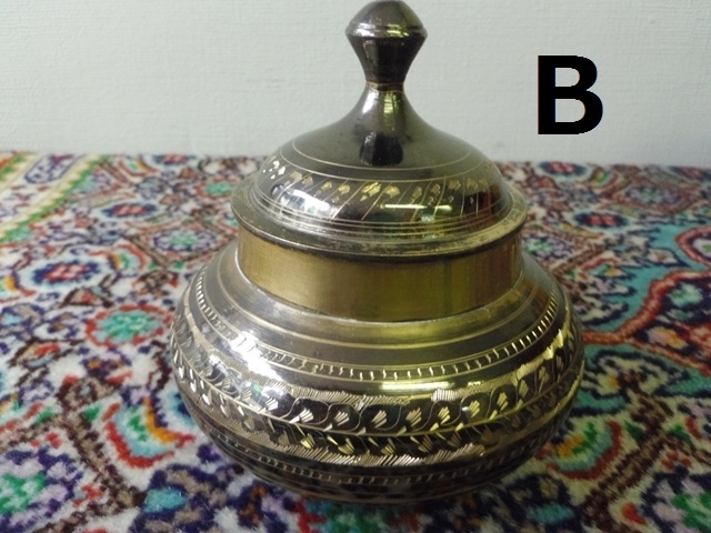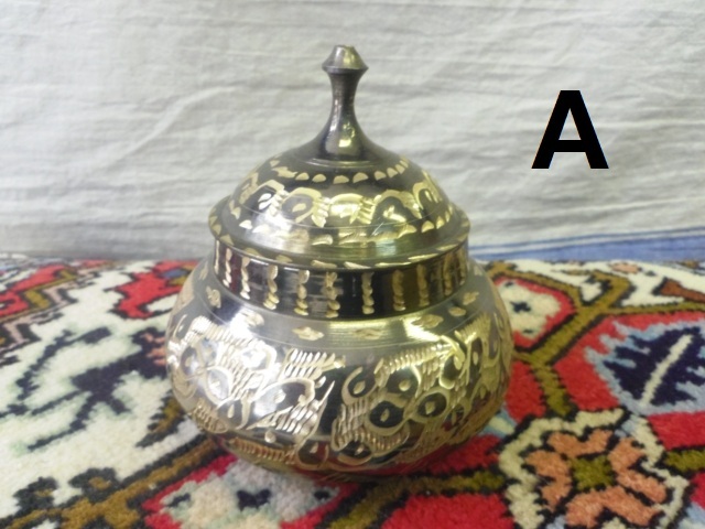 ペルシャの伝統的製法により手掘り模様が施された銅製の砂糖入れ。ずっしりとした重さで存在感があり、使うほどに味わいが増してきます。サイズ:直径6.5cm 高さ10cm