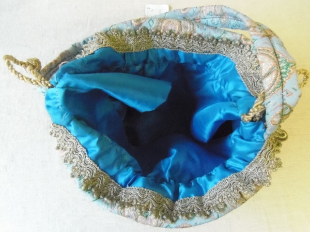 こちらは大変縁起が良いとされるテルメ・クロスを巾着型バッグにした希少なバッグです。